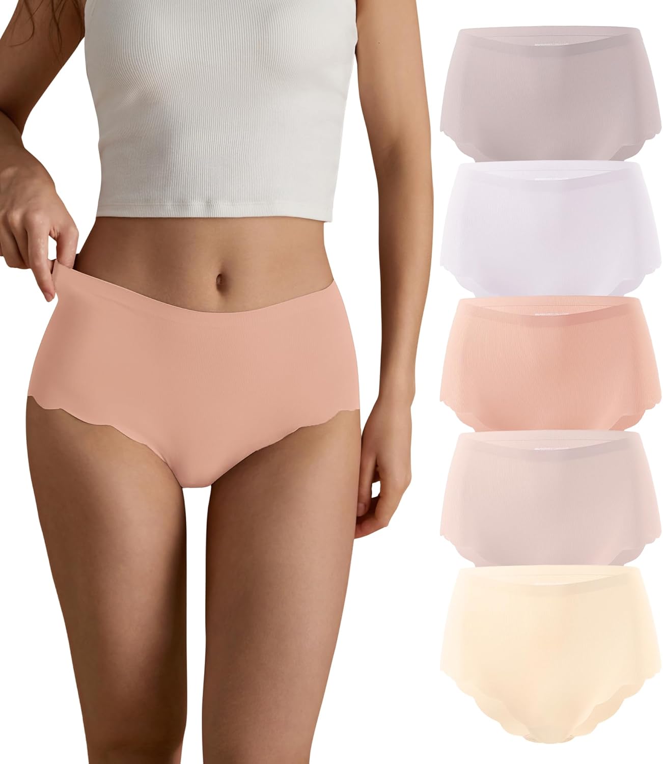 SHARICCA Seamless High Waisted Underwear for Women Cheeky Underwear Wave Edge No Show Bikini Panties Ribbed Panties Pack