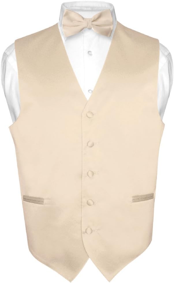 Vesuvio Napoli Men's Dress Vest & BowTie Solid PINK Color Bow Tie Set for Suit or Tuxedo