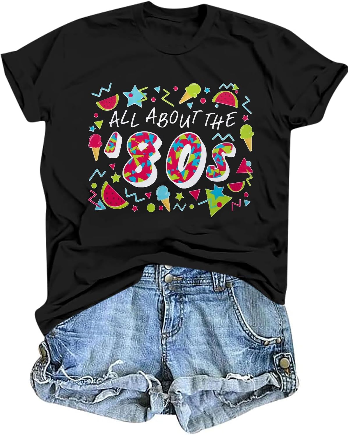 ASTANFY 80s Workout Costume Outfit for Women I Love The 80's T-Shirt 80s Outfit Hip Hop Party Tee Birthday Theme Party Gift