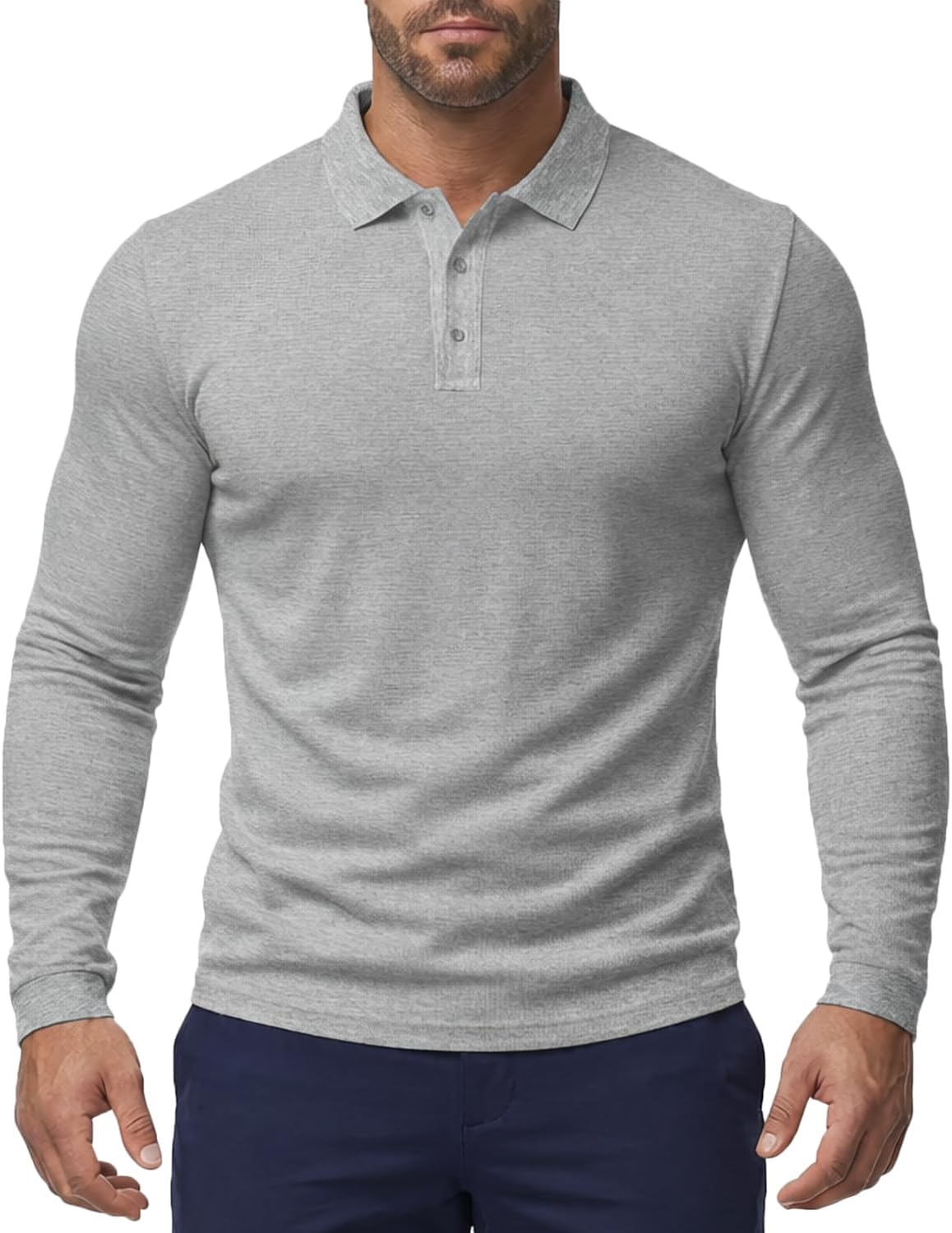 Men's Long Sleeve Waffle Knit Polo Shirt Casual Textured Collar Pullover Athletic Fit Golf Shirts Top WT08B
