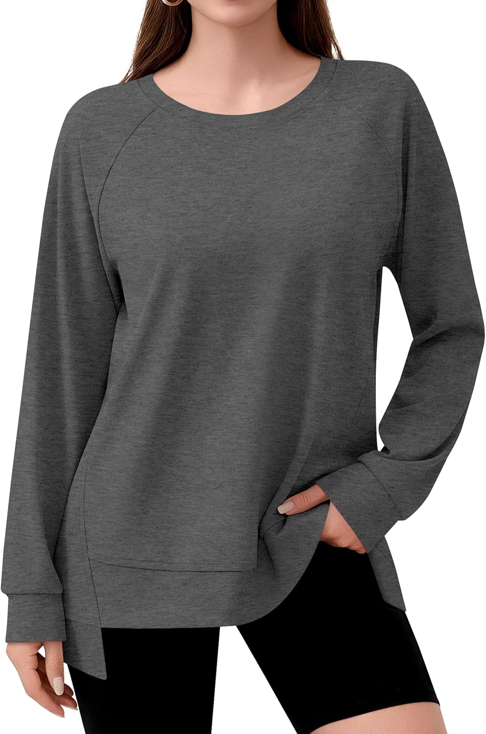 Women's Long Sleeve Crew Neck Workout Sweatshirts Loose Casual High Low Tunic Pullover Tops 2025 Fall Clothes