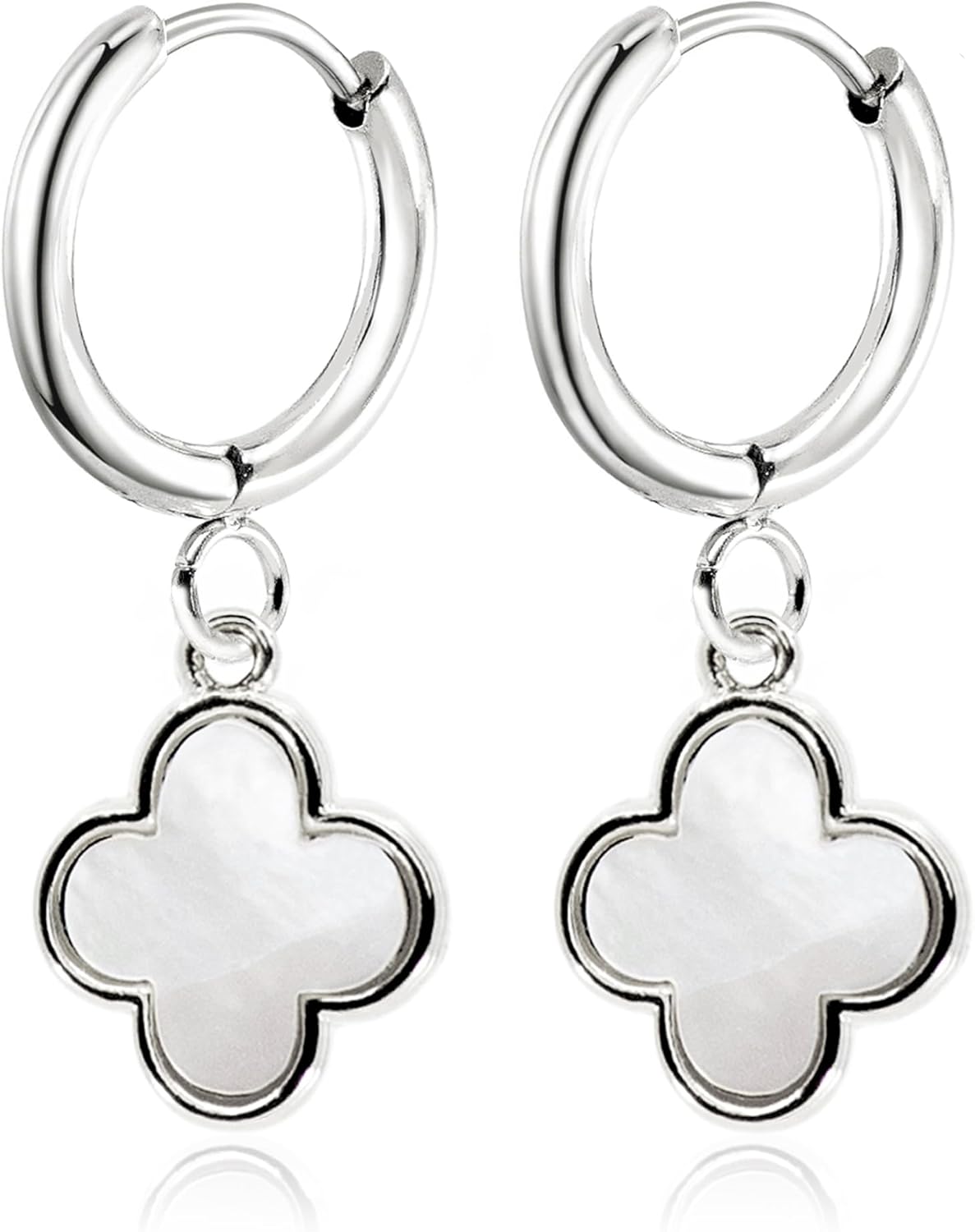 ![Four Leaf Clover Dangle Earrings for Women • 14K Gold Plated White Mother of Pearl/Black Onyx/CZ Diamond Lucky Clover Charm Drop Huggie Hoops Earrings [CVRE] - Image 4](https://m.media-amazon.com/images/I/913JK7xSHmL._AC_SL1500_.jpg)