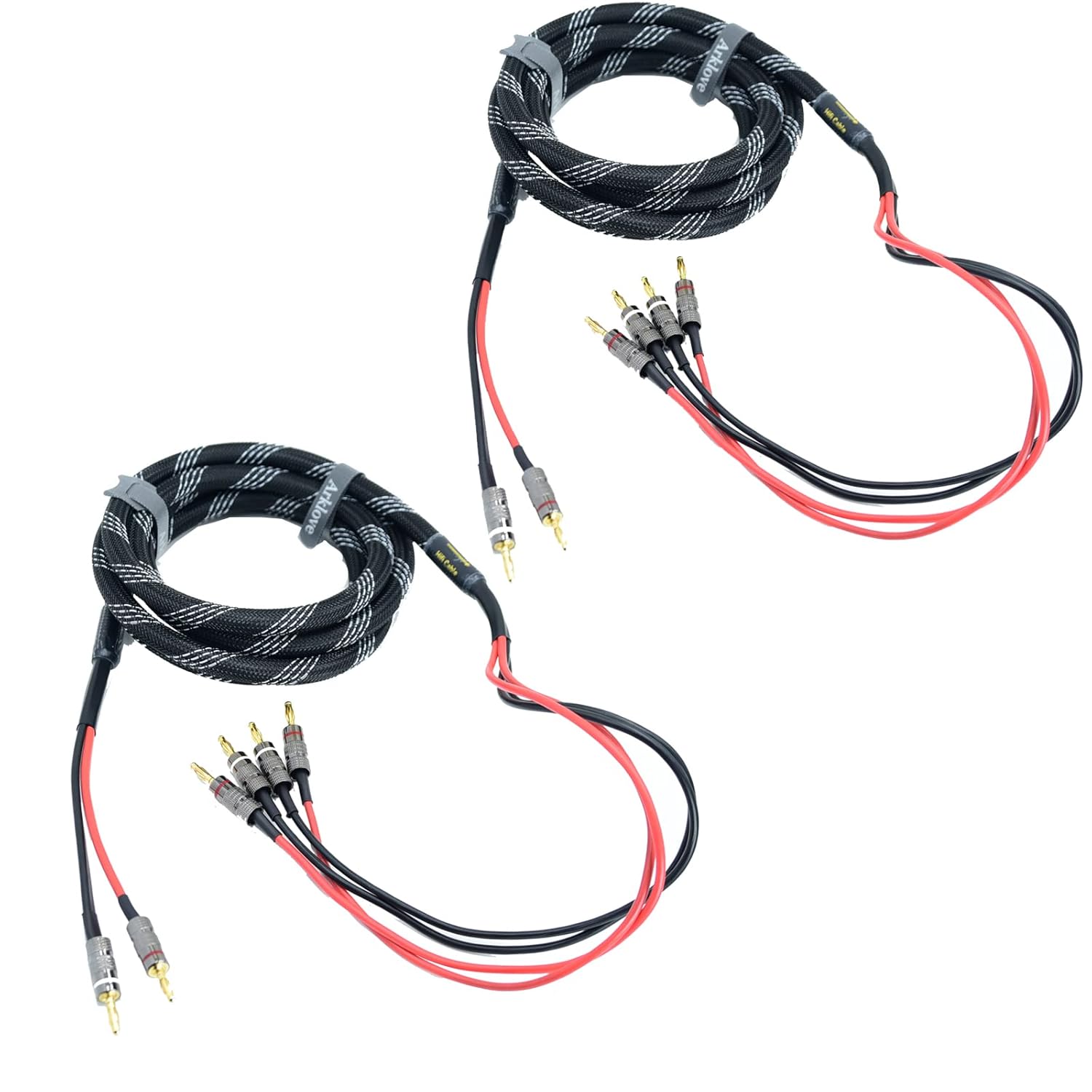 Arklove 10ft 2packs 13awg Speaker Cable Premium Heavy Duty Braided Wire Dual Banana 2 Plug to 4 Banana Male Plugs Frequency Division 2 Banana Plugs - 4 Banana Plugs 1pair