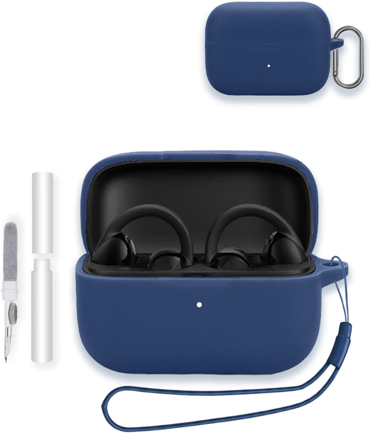 Case for Soundcore C50i by Anker Earbuds 2025 New, WUNIAK Soft Silicone Protective Portable Scratch Shock Resistant Shell with Cleaner Kit & Carabiner & Lanyard for Soundcore C50i,Blue