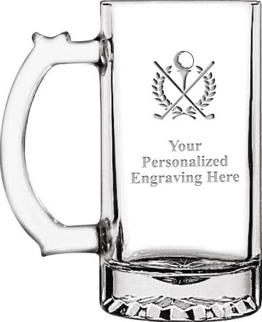 Golf Personalized Beer Mugs, 16 oz Laser Engraved Custom Golf Beer Mug Gift, Engraving Included Prime