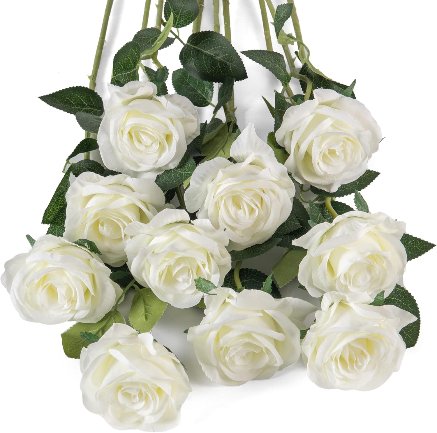Flojery 10pcs White Silk Roses Artificial Rose Flowers Long Stem for DIY Wedding Bouquet Table Centerpiece Home Décor
