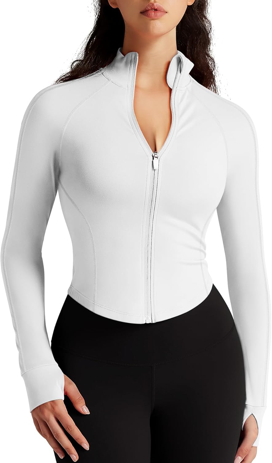 Womens Zip Up Bbl Jacket Lightweight Cropped Athletic Jacket Track Gym Workout Jackets for Running Yoga Hiking