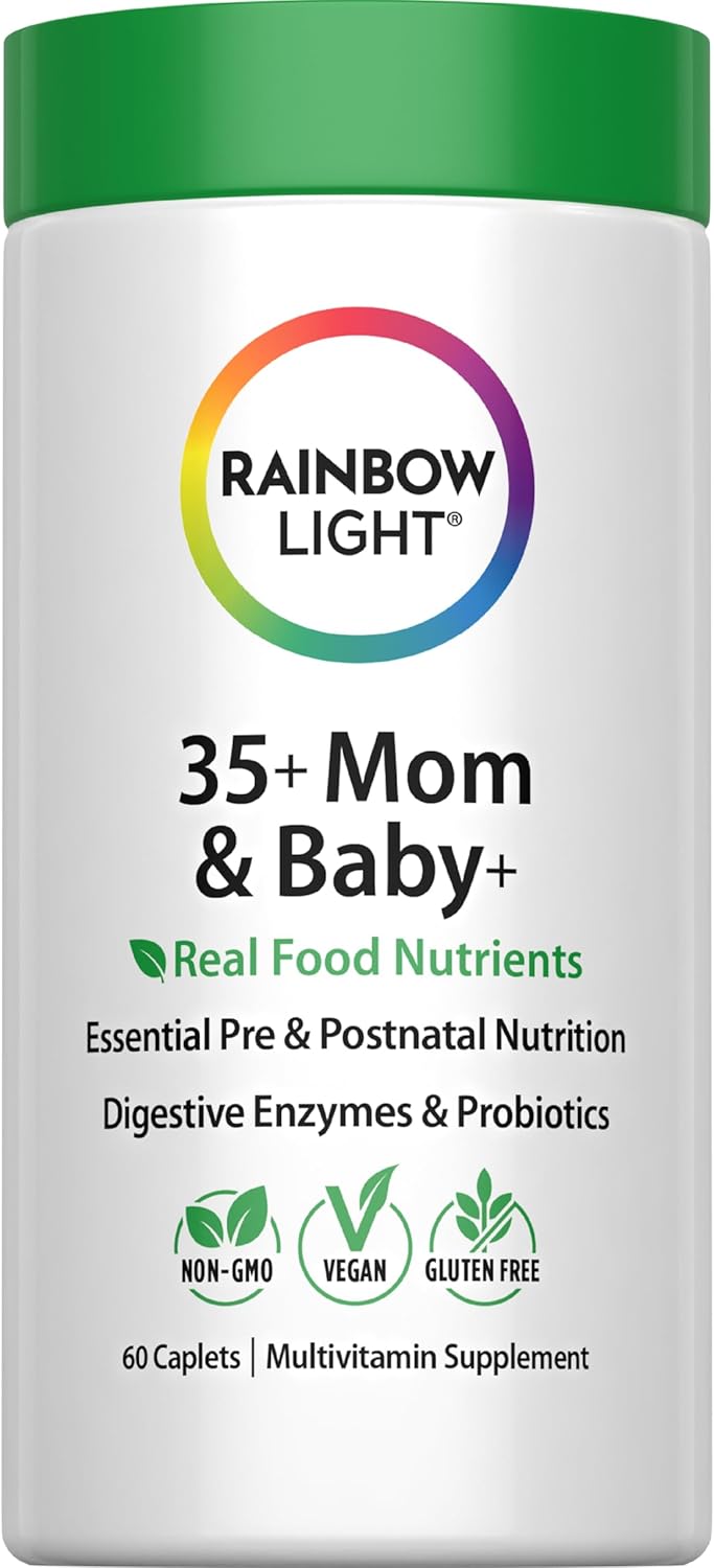 Rainbow Light 35+ Mom & Baby + Multivitamin | 60 Caplets | Prenatal and Postnatal Nutrition | Real Food Nutrients, Digestive Enzymes & Probiotics | Essential Vitamins and Minerals for Women