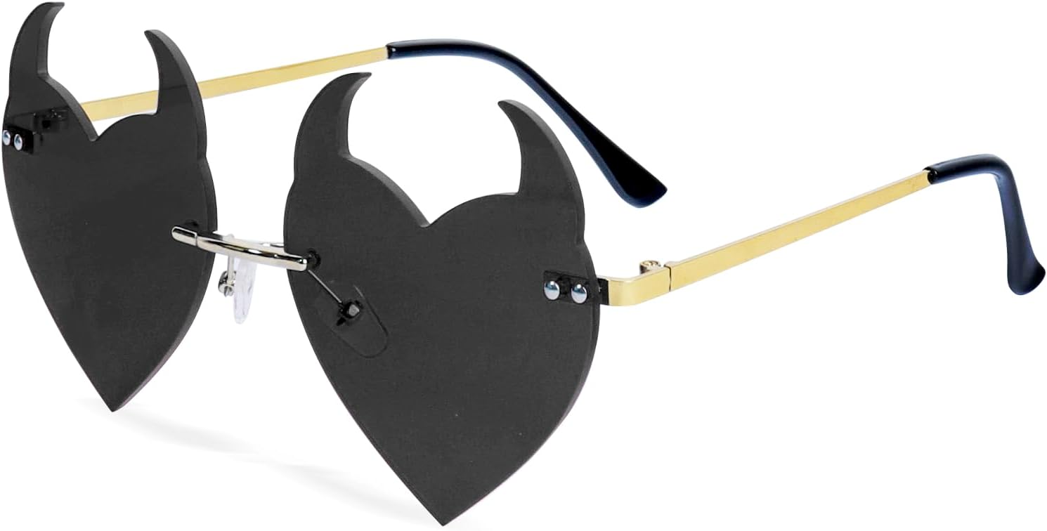 Devil Ear Heart Shape Sunglasses Rimless Goth Glasses for Women Men Christmas Party Cosplay Glasses Trendy Eyewear