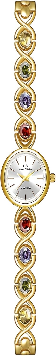 MASTOP Luxury Vintage Gold Watches for Women with Jade Colorful Crystal Small Oval Dainty Silver Watch Ladies Bracelet Dress Quartz Wrist Watch Waterproof Bangle