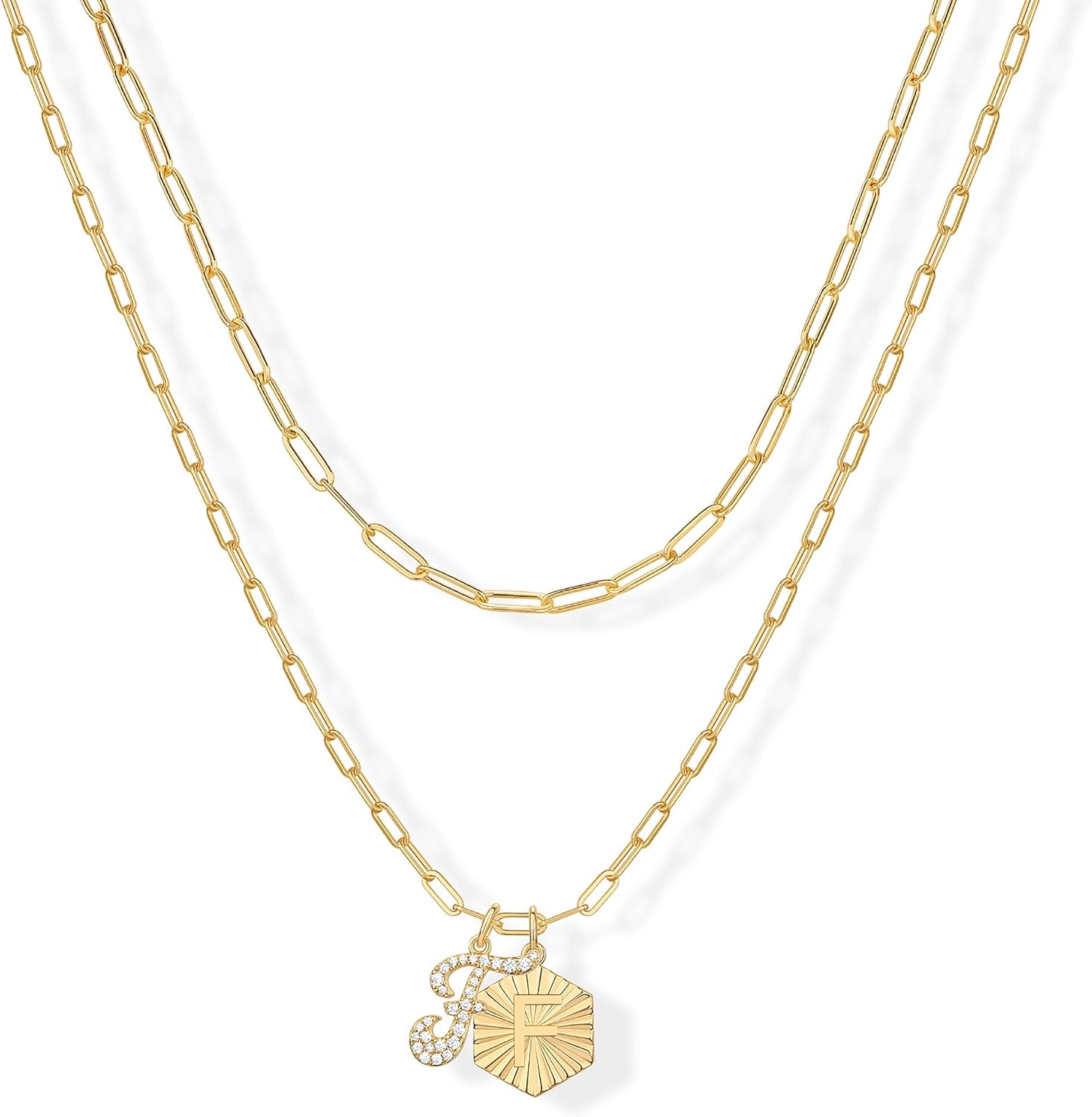 PAVOI 14K Gold Plated Dainty Hexagon Initial Letter Pendant Layered Necklace Jewelry Gift for Women | Paperclip Layering Chain Necklace