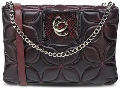 Cuadra Women's Wine Python Leather Shoulder Bag with Chain