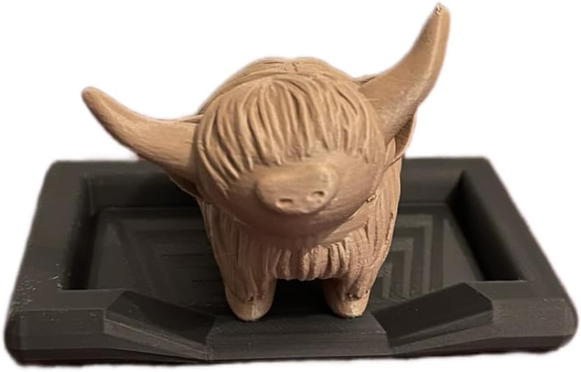 - Unique Design: Stylish farmhouse-inspired ring holder featuring a whimsical highland cow figurine and a blue base dish.