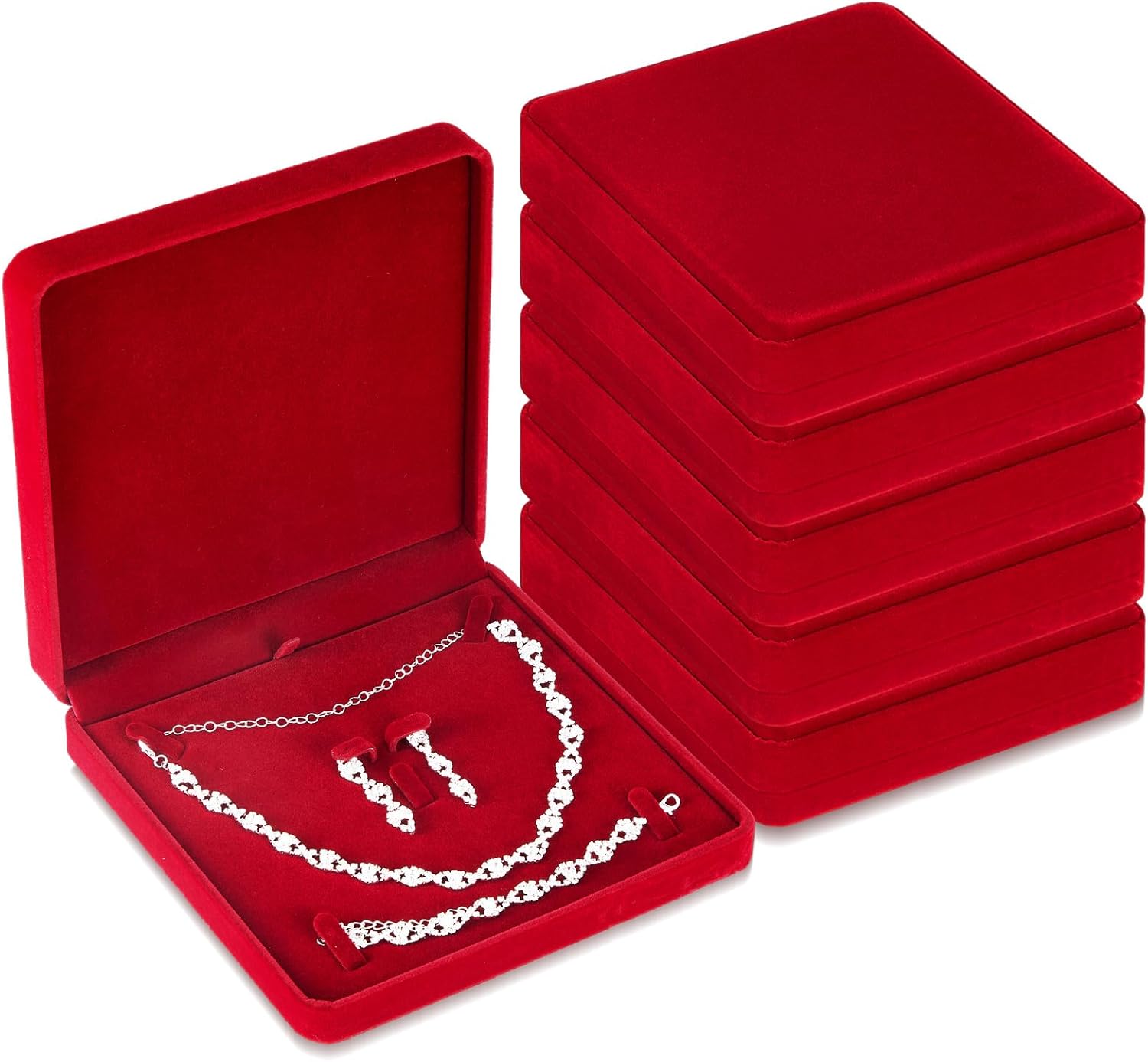 - Special Feature: Elegant Design: Gives the wine red jewelry storage holder a beautiful and elegant appearance, and the soft velvet well shows your bright and elegant jewelry, which can attract the attention of both women and girls, Reliable Material: Jewelry gift boxes are covered with velvet, reliable and reusable, sturdy and smooth, not easy to break, you can serve you for a long time and use with confidence; Velvet jewelry boxes have fasteners to keep your jewelry firmly in place, and the lid is tightly sealed to prevent your jewelry from getting lost, Rich Quantity: You will receive 6 wine red velvet jewelry boxes, which can be applied to store and display your earrings, necklaces, rings and other jewelry, enough quantity to meet your needs and replacements; Only box, jewelry is not included, Size Information: Each jewellery gift box is measured approximately. 7.5 x 7.5 x 1.6 inches / 19 x 19 x 4 cm, suitable size and lightweight, suitable for keeping your matching necklace, bracelet, earrings and ring together in a box, Wide Application: The necklace and earring gift box is exquisite and practical, for wedding, birthday, engagement, anniversary, Mother's Day, Thanksgiving, etc. , which can make your jewelry much more beautiful than packaged in a cardboard box