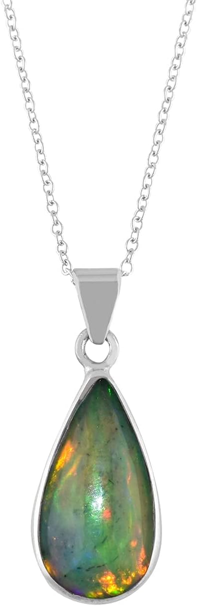 InfinityGemsArt Mothers Day Gifts Black Fire Opal Pendant Necklace Women, Birthstone Jewelrt Natural Gemstone Dainty Bezel Handmade Jewelry, Chakra Energy Healing Crystals, 925 Silver Chain 18 inch