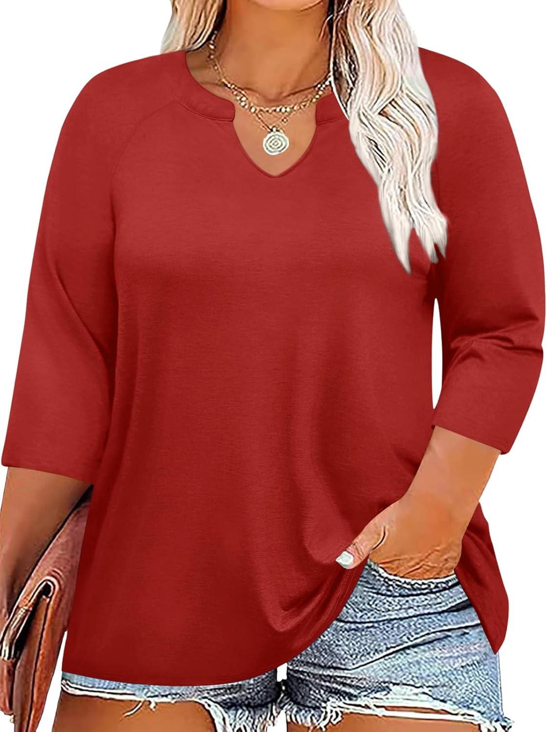 Chulianyouhuo Womens Plus Size Tops 3/4 Sleeve V Neck Casual T Shirt Summer Basic Loose Fit Tunic Blouse 2025