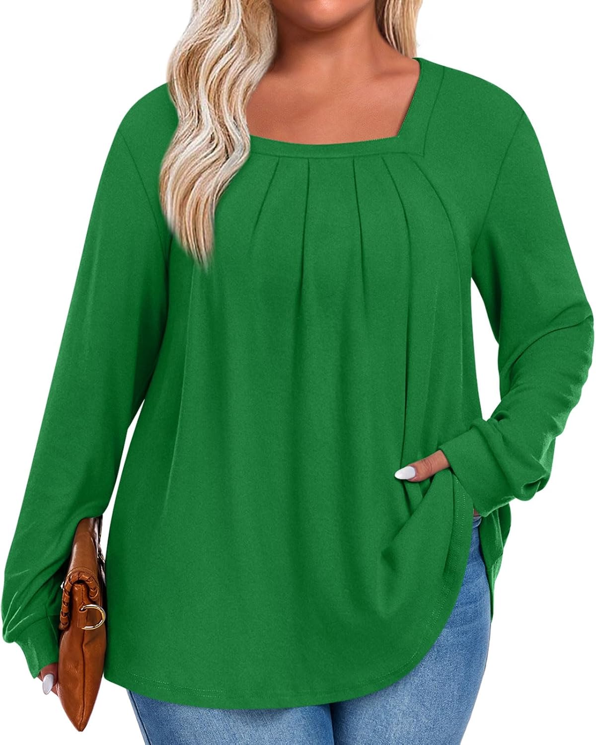 Anymeet Plus Size Tops for Women Long Sleeve Tunic Casual Shirts Square Neck Blouse 1X-5X