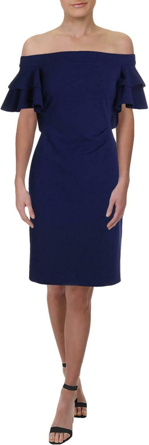 Ralph Lauren Womens Ruffled Off-Shoulder Dress, Blue, 8