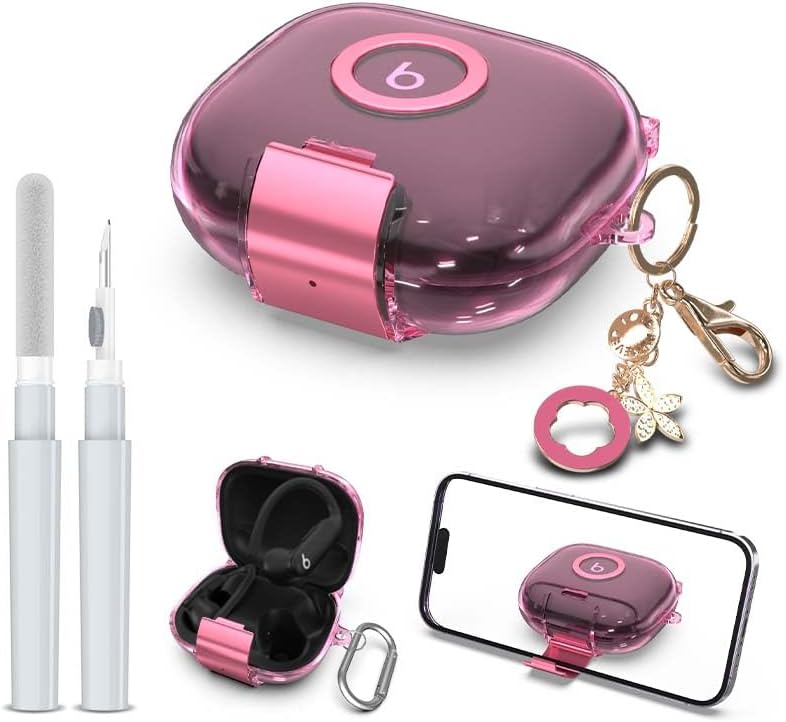 Clear Cover for Powerbeats Pro 2 Case with Secure Lock & Phone Stand, Soft TPU Protective Cover Compatible with Beats Powerbeats Pro 2 Earbuds Accessories with Fashion Keychain for Women (Clear Pink)