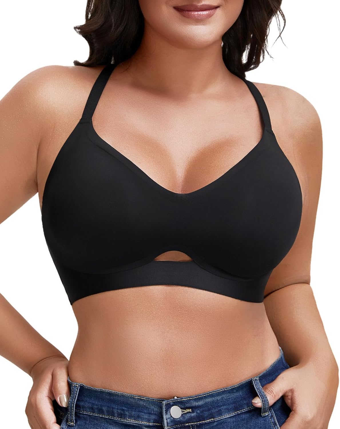 Wireless Seamless Bra for Women, Ribbed Longline V-Neck Comfort Lift, Adjustable Straps, Back-Smoothing