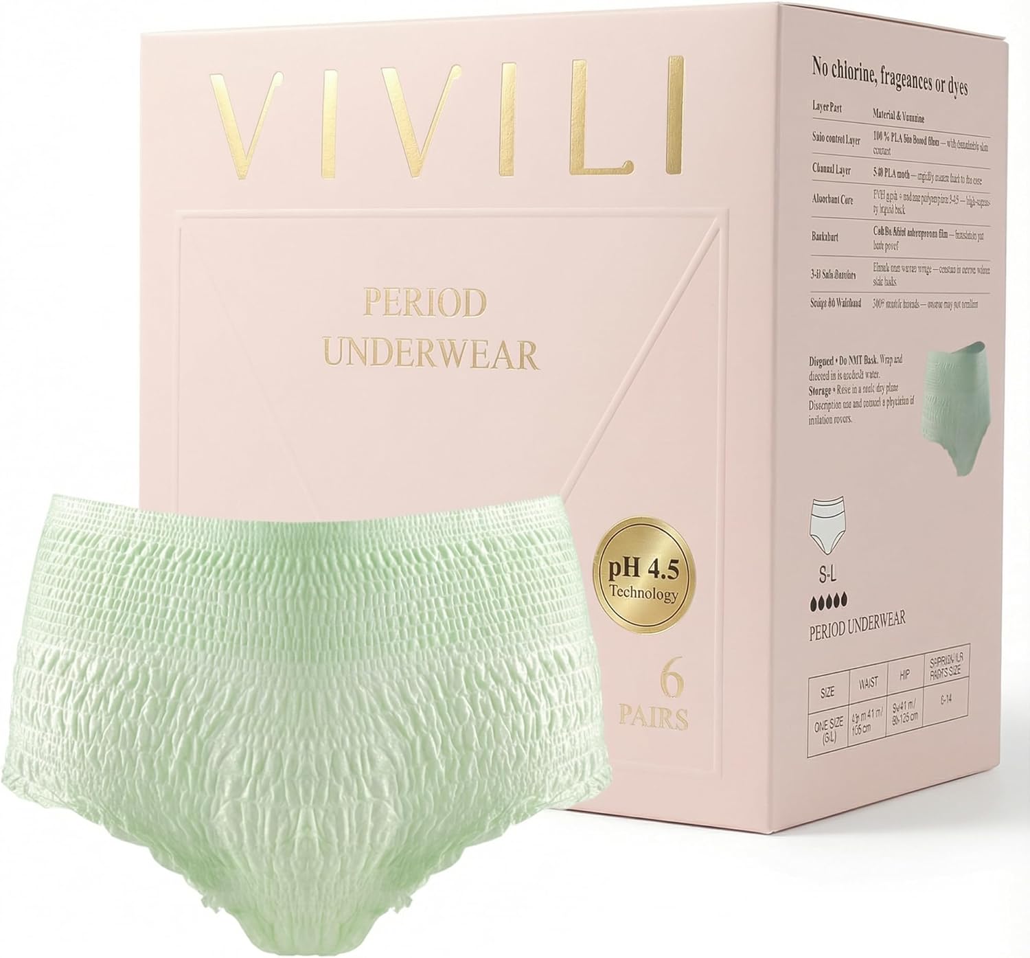 - 3.[AESTHETIC COMFORT] LOOKS LIKE LINGERIE, NOT A DIAPER: We redesigned the period experience. VIVILI comes in a calming Sage Green tone that looks like premium underwear, not a medical diaper. Made from soft, silent, corn-based materials (no "crinkly plastic" noise), the ultra-stretchy waistband is gentle on bloated bellies and tender C-section incisions, making it a hospital bag essential and perfect postpartum gift.