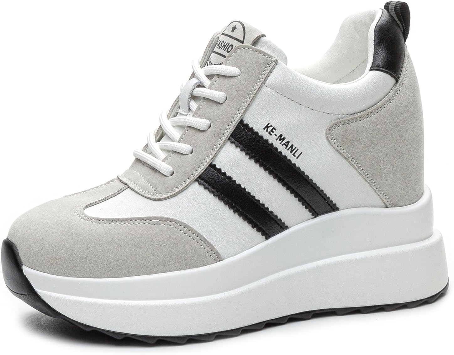 AONEGOLD Platform Sneakers with High Hidden Heel, Wedge Sneakers, Leather Upper, Fashion Lace-ups, Increasing 3.94 inches