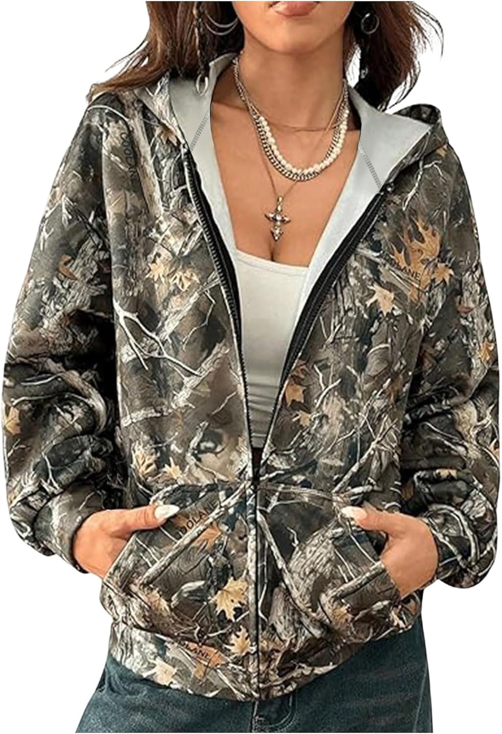 Floerns Women's Camo Hoodie Long Sleeve Zip Up Hoodie Streetwear Sweatshirts Jacket