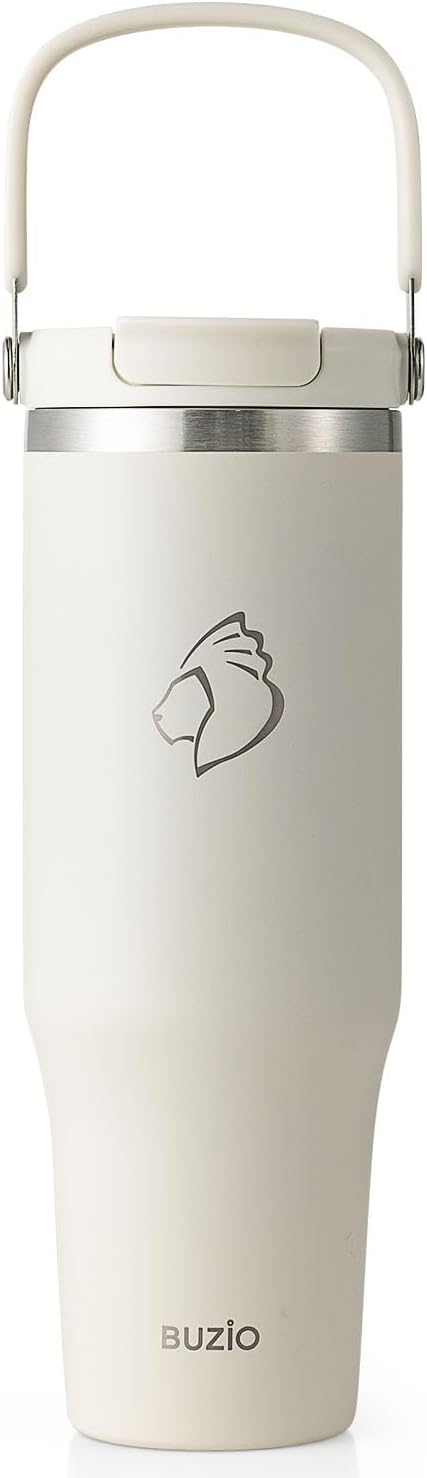 - Insulated Tumbler Keeps Fresh: The tumbler with handle is made of safe 18/8 food-grade stainless steel. BUZIO ThermoArmour technology makes the tumbler cups keep your drinks cold for up to 24 hours and hot for up to 12 hours. Being fresh all day long with BUZIO