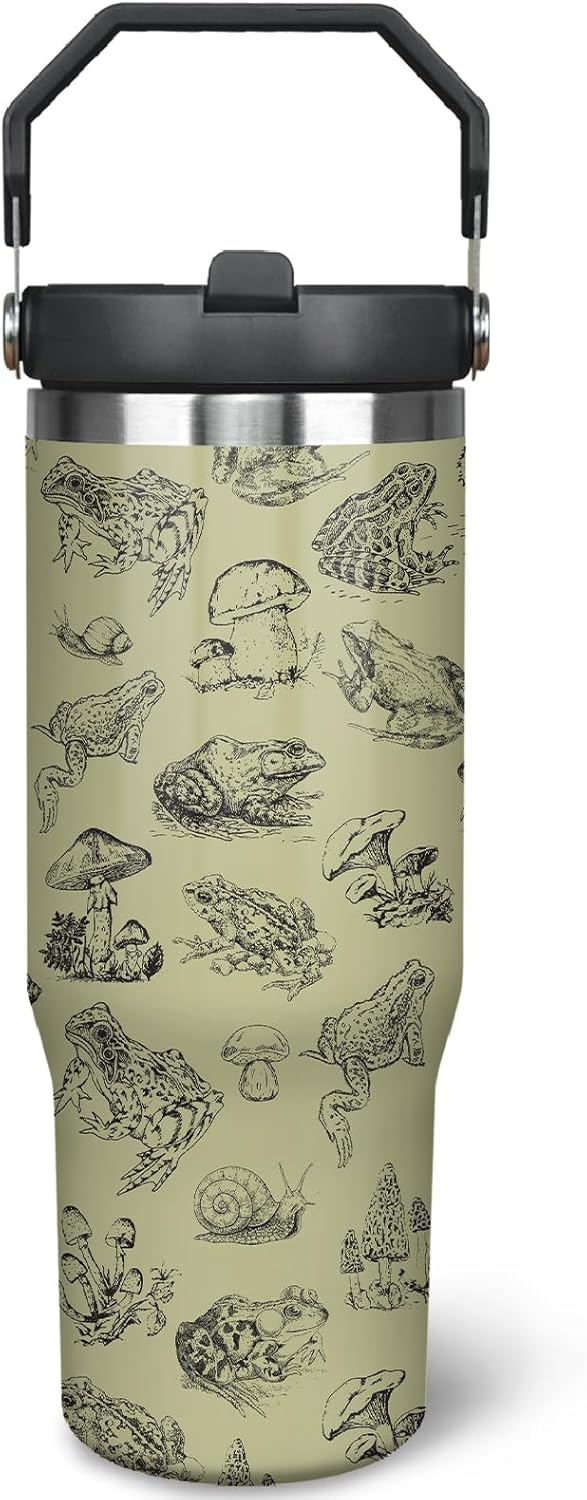 30oz Frog Tumbler with Handle and Straw, Stainless Steel Insulated Frog Cup with Top Handle and Lid for Women and Men