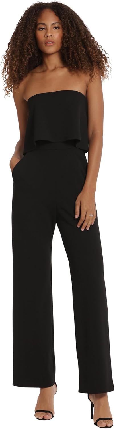 Donna Morgan womens Sleek Chic Strapless Peplum Jumpsuit Dressy Party Event Occasion Night Out Guest of