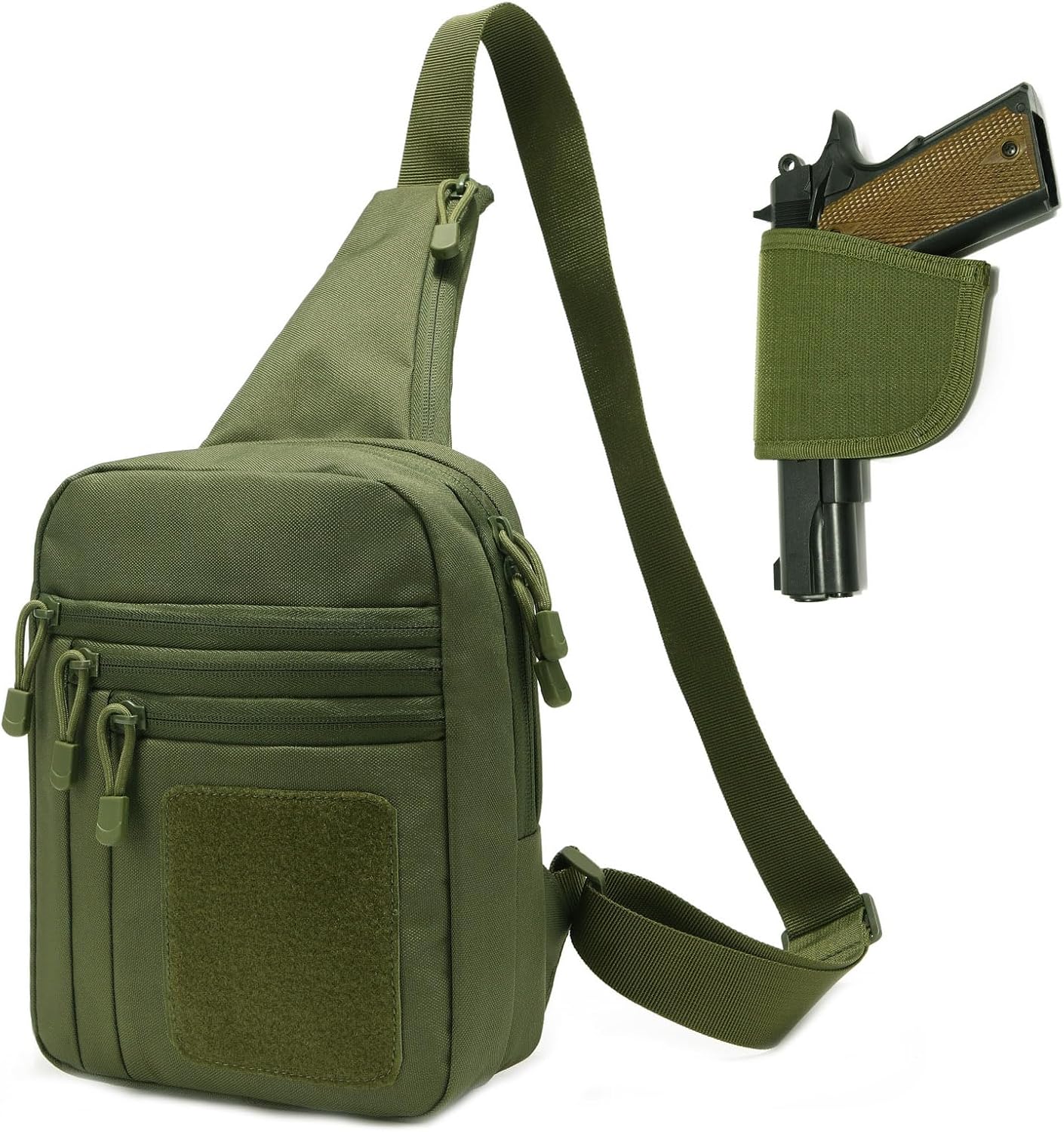 - CONCEALABLE & SECURE:Looks like a daily chest pack. Avoid any unwanted attention in public, Perfect Concealed Carry Pistol , The gun holster has a hook & loop attached to the main pocket, quick-opening design for the main pocket, You can hold the gun in the right position without worrying about Shaking.