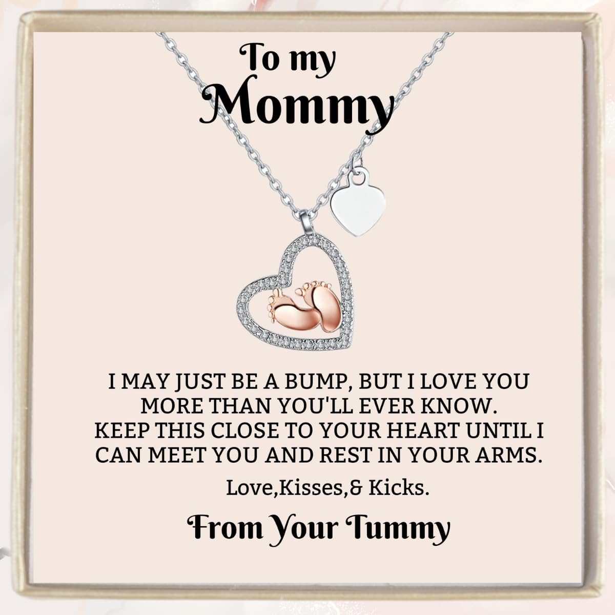 IPINK Baby Feet Heart Necklace Gift Set - To My Mommy, Pregnancy Gifts for First Time Moms