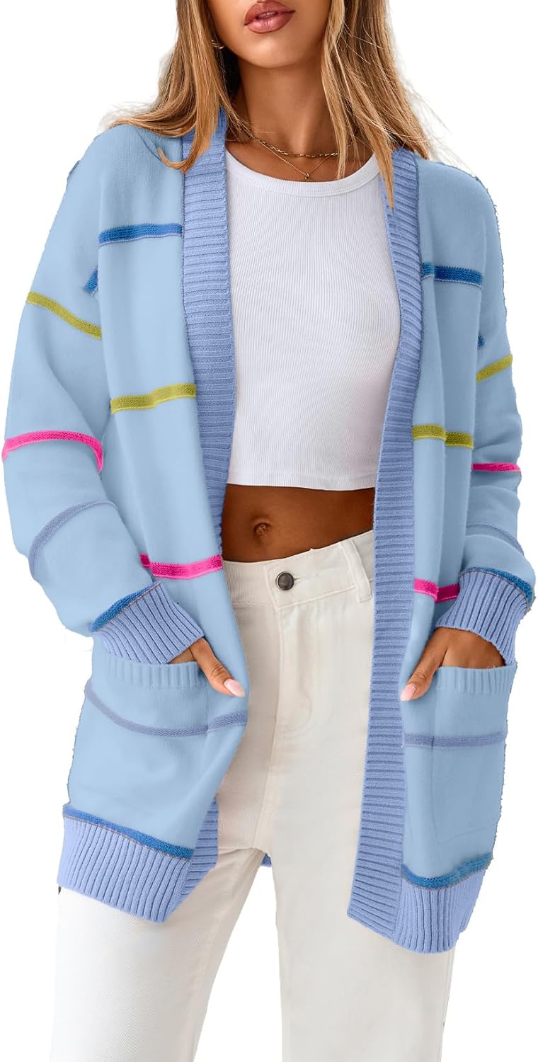 Sidefeel Cardigan Sweaters for Women Lightweight Striped 2025 Long Sleeve Open Front Loose Knit Sweaters Clothes