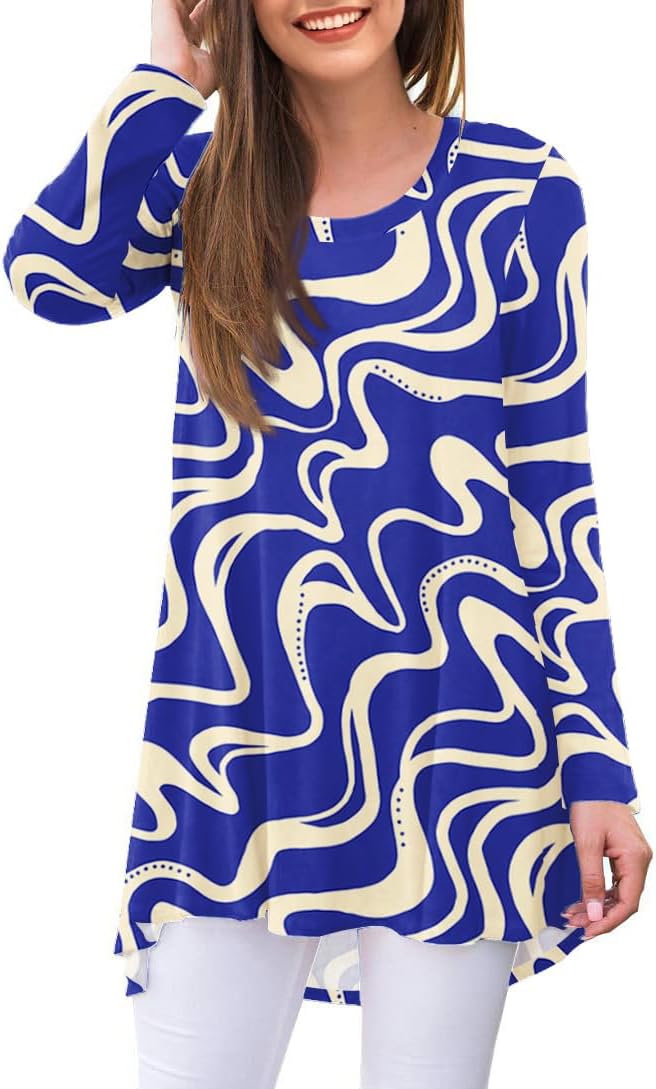 Popana Long Sleeve Tunic Tops for Women, Loose Fit Dressy Long Tops to Wear with Leggings, Soft Stretchy Tunic Top