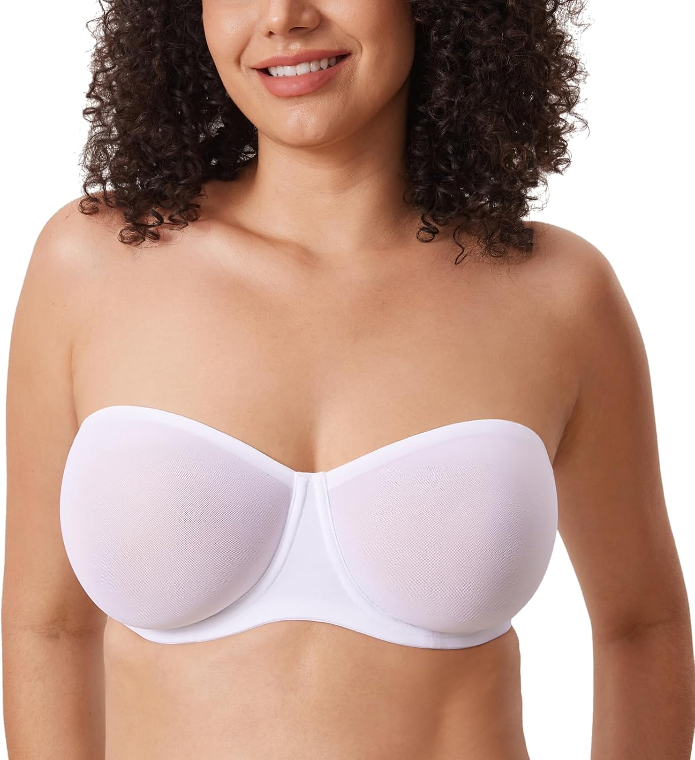 DELIMIRA Women's Cosnufy Strapless Bra Sheer Mesh Plus Size Unlined Underwire Bras