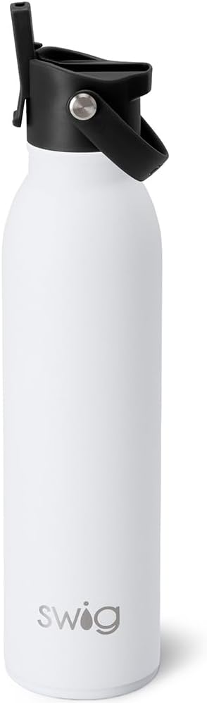 Swig Life 20oz Insulated Water Bottle, Travel Water Bottle with Straw and Lid, Cup Holder Friendly, Stainless Steel (Matte White)