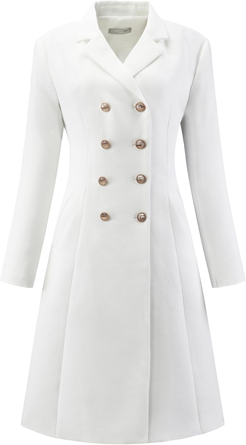 Women's Tweed Blazer Dress Collared Double Breasted A-Line Formal Work Dresses