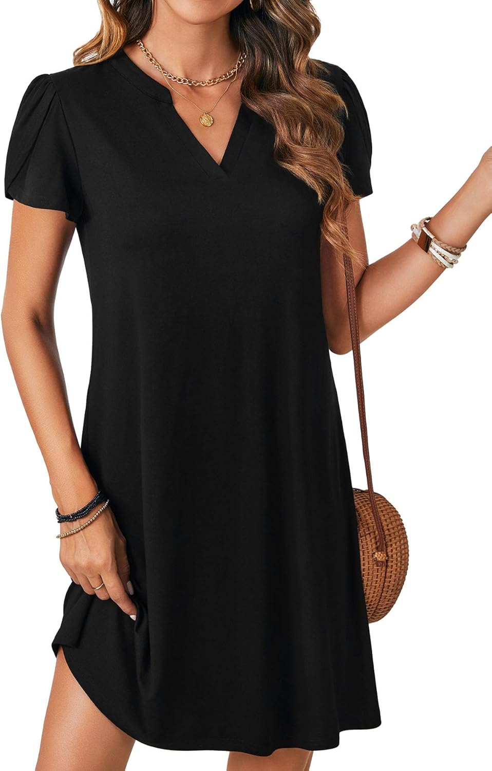 Vrtige Women's Casual Shirt Dress Summer V Neck Petal Short Sleeve Shift Mini Dress