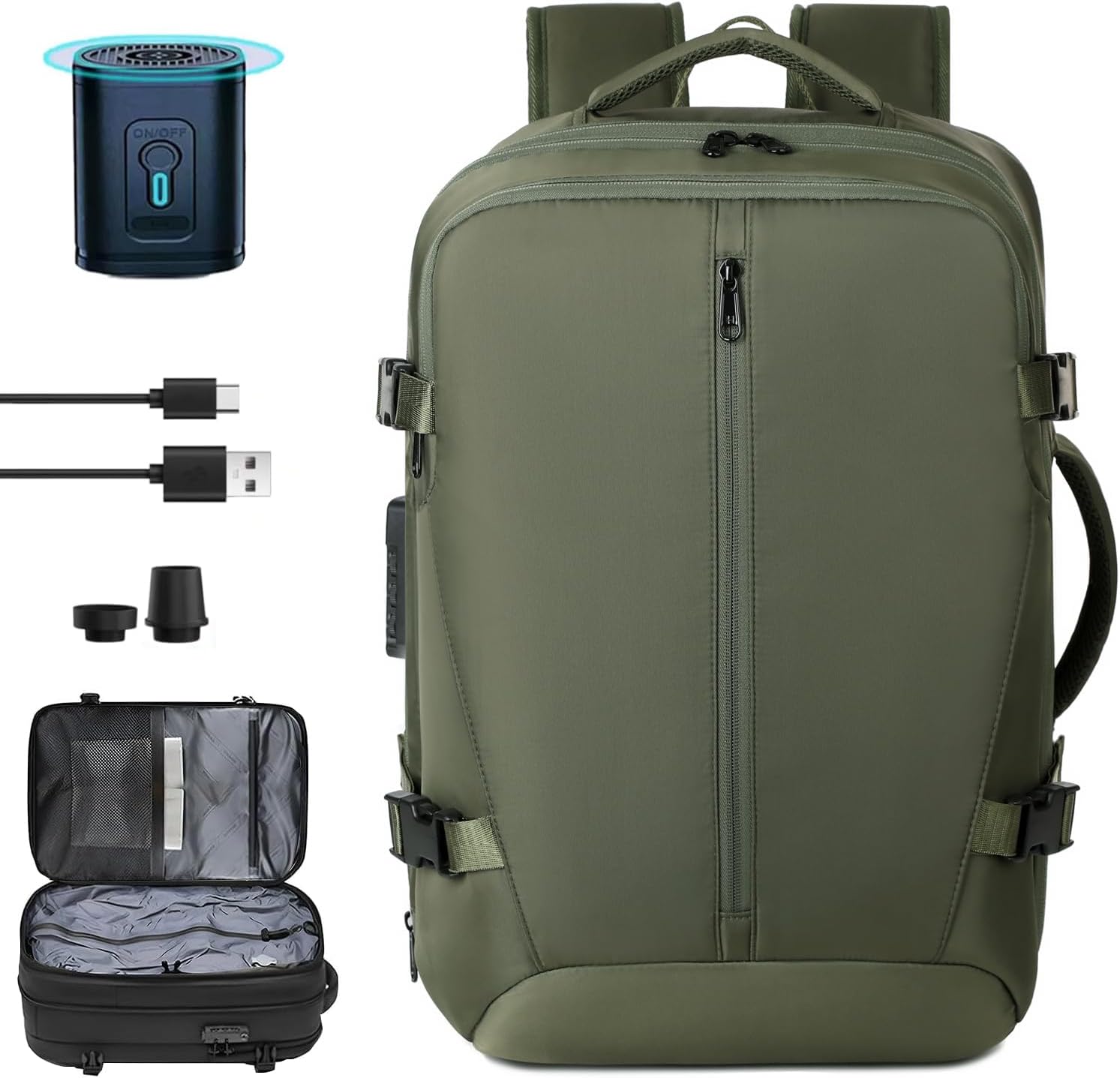 - 【Smart Organization, Efficient Storage】Holds more than a standard backpack, This backpack with vacuum compression includes three large compartments, hidden pockets, a wet/dry separation pouch, and a padded laptop sleeve that fits up to 16". Stay organized and ready for anything.