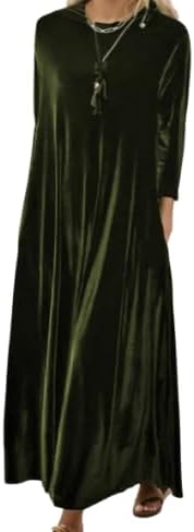 TIAFORD Women Long Sleeve Velvet Dress Casual Cewneck Flowy Holiday Shift Maxi Dress Loose Party Tshirt Dress with Pocket