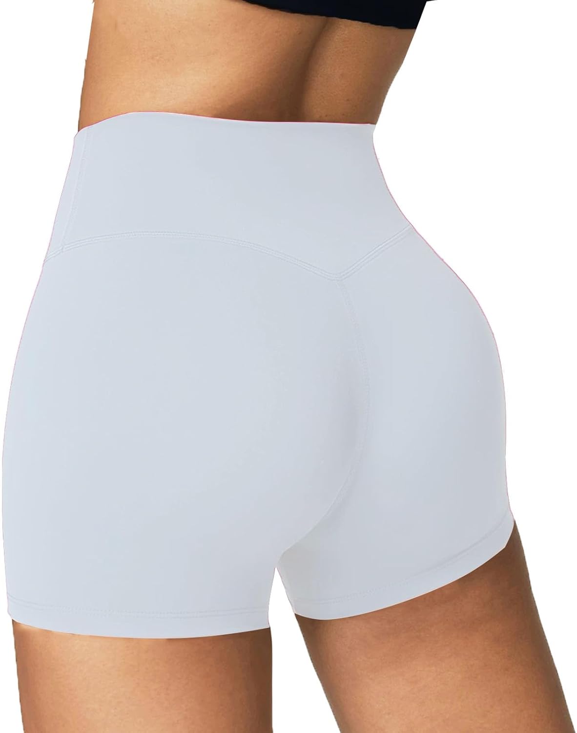High Waisted Biker Shorts for Women-5" Tummy Control Fitness Athletic Workout Running Yoga Gym Shorts White