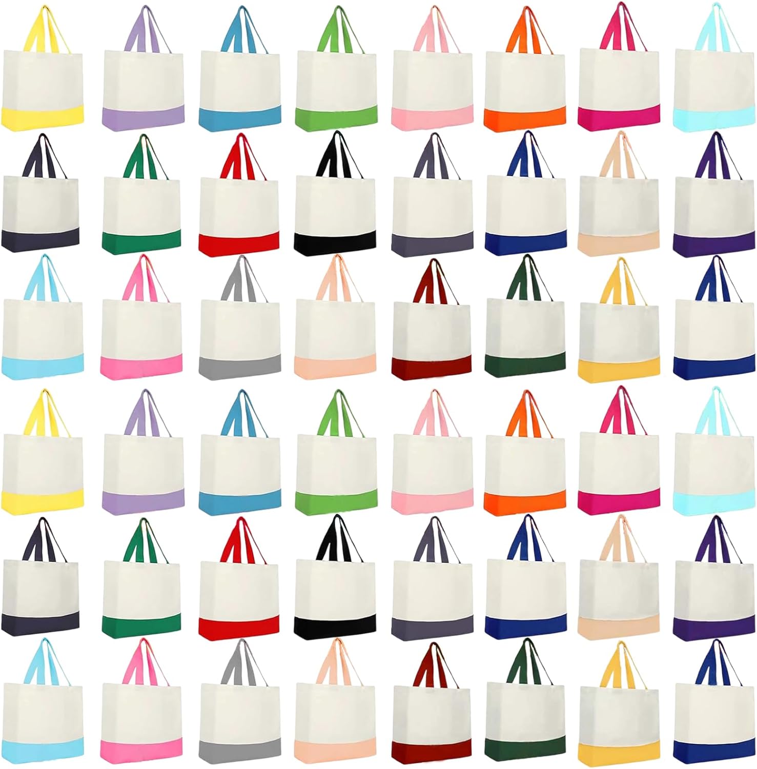 48 Pack 12 oz Large 18.5 x 15 Inch Canvas Tote Bags Bulk with Handles 24 Colors Shopping Reusable Blank Bags for Gift