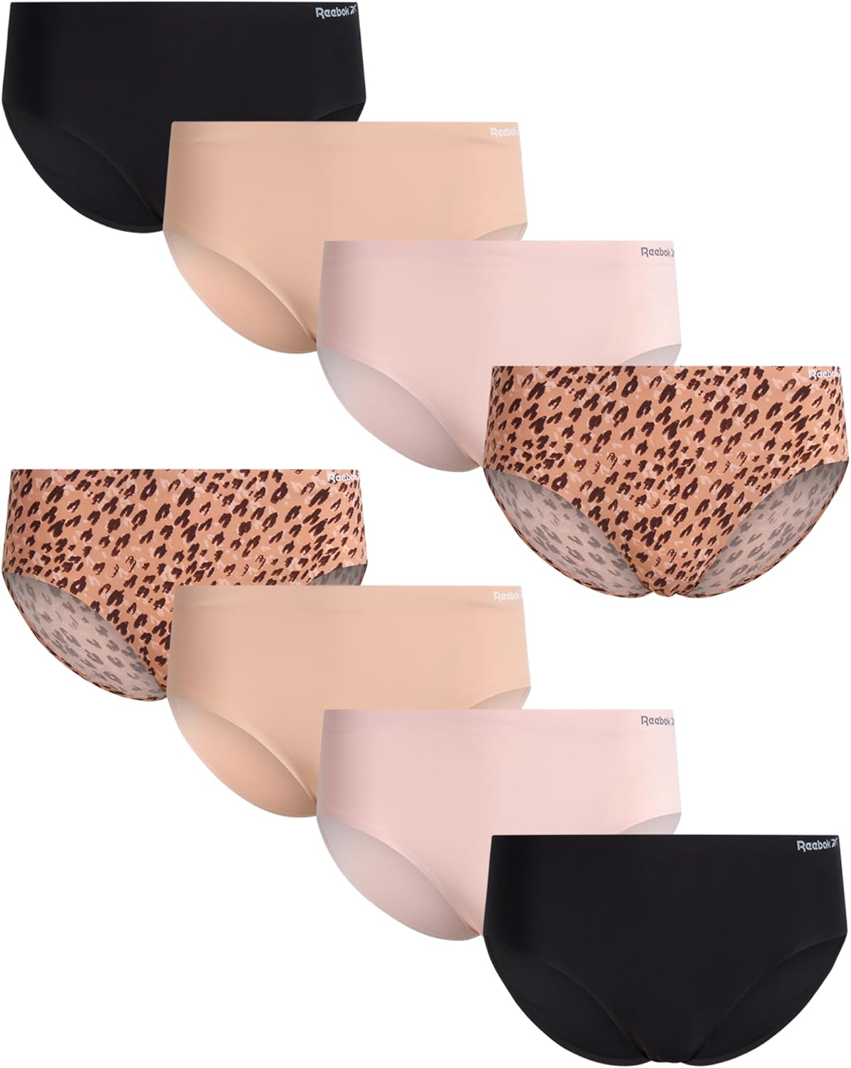 Reebok Women's Hipster Briefs - 8 Pack Stretch Performance Breathable Hipster Panties - Seamless Underwear for Women (S-XL)