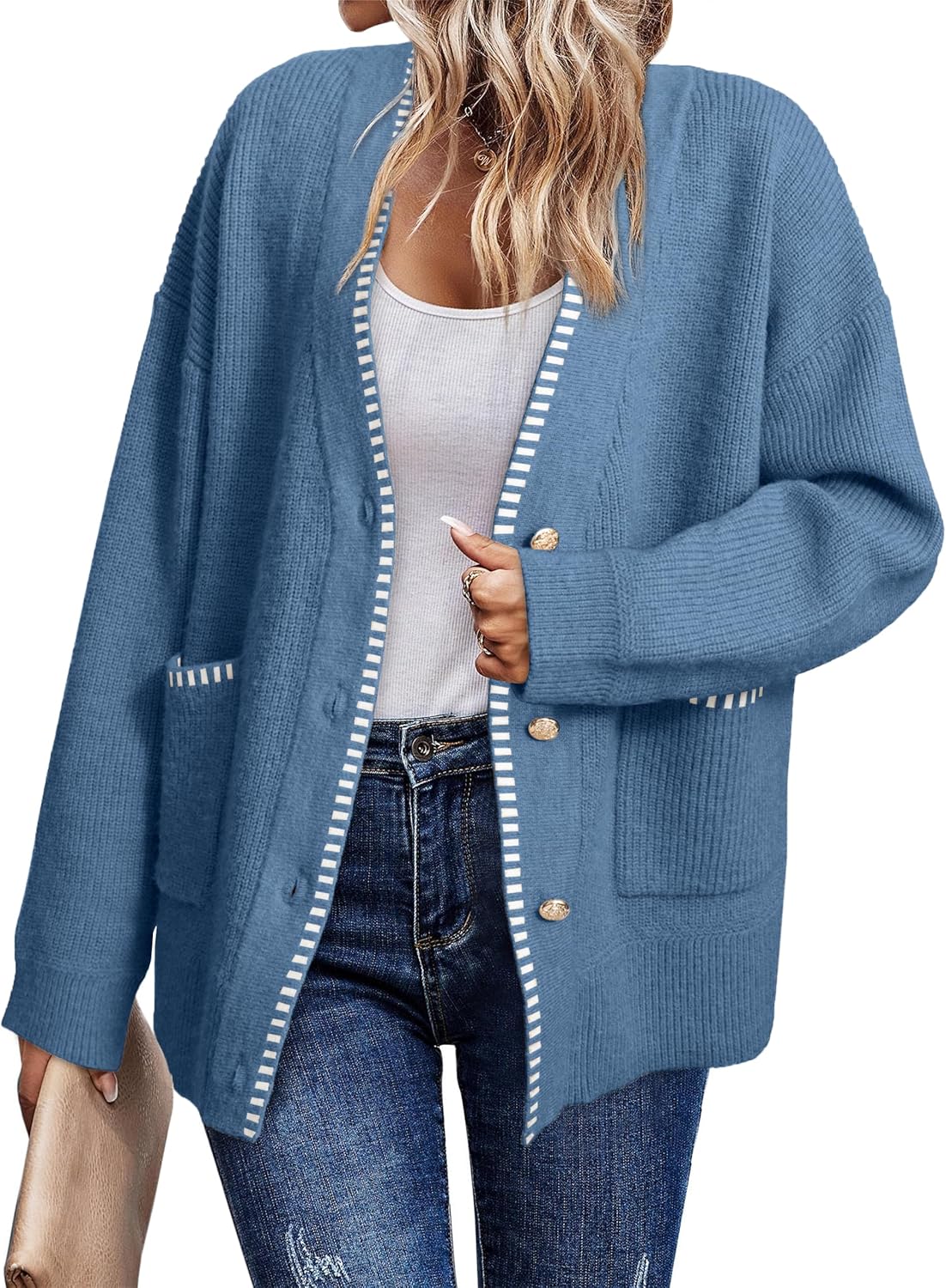 Simplee Womens Chunky Oversized Crochet Cardigan Long Sleeve Cable Knit Sweater Casual V-Neck Button Up Outerwear Coats