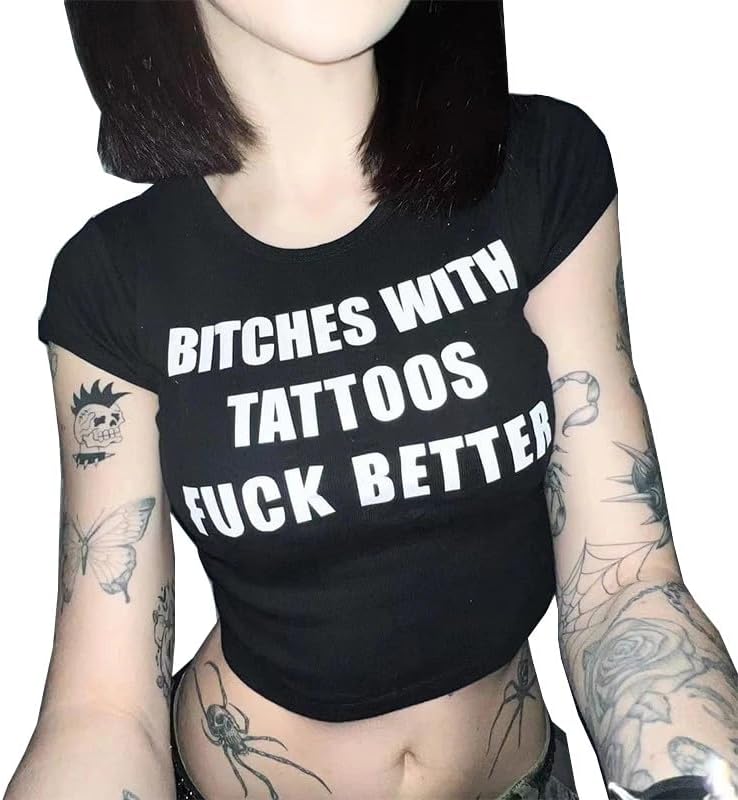 Baby Tees for Women Y2K Baby Tees E-Girls Cute Graphic Print Crop Tops Slim Fit T Shirts Retro Vintage Aesthetic