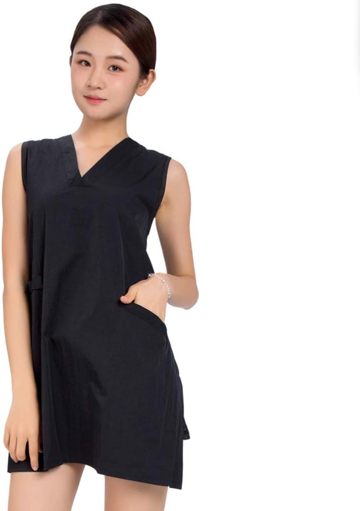 Luxshiny V-Neck Mesh Back Apron Sleeveless Hairdresser Smock with Front Pockets Professional Salon Workwear Protective Stylist Apron for Hairdresser Barber Use