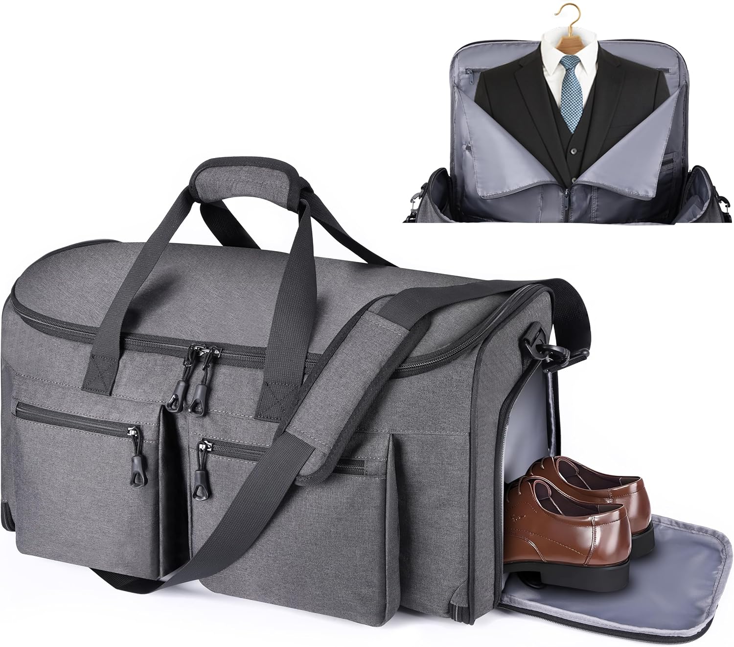Convertible Duffle Bags for Travel Carry On Suit Duffle Bags with Shoulder Strap 2 in 1 Hanging Garment Duffle Bag for Men Women (Grey)