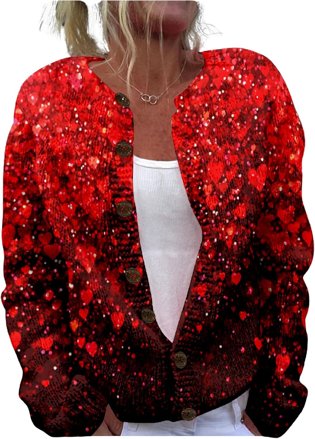 Heart Print Cardigan Valentines Sweater for Women Cute Chunky Button Up Plus Size 2025 Spring Fashion Warm Blouses