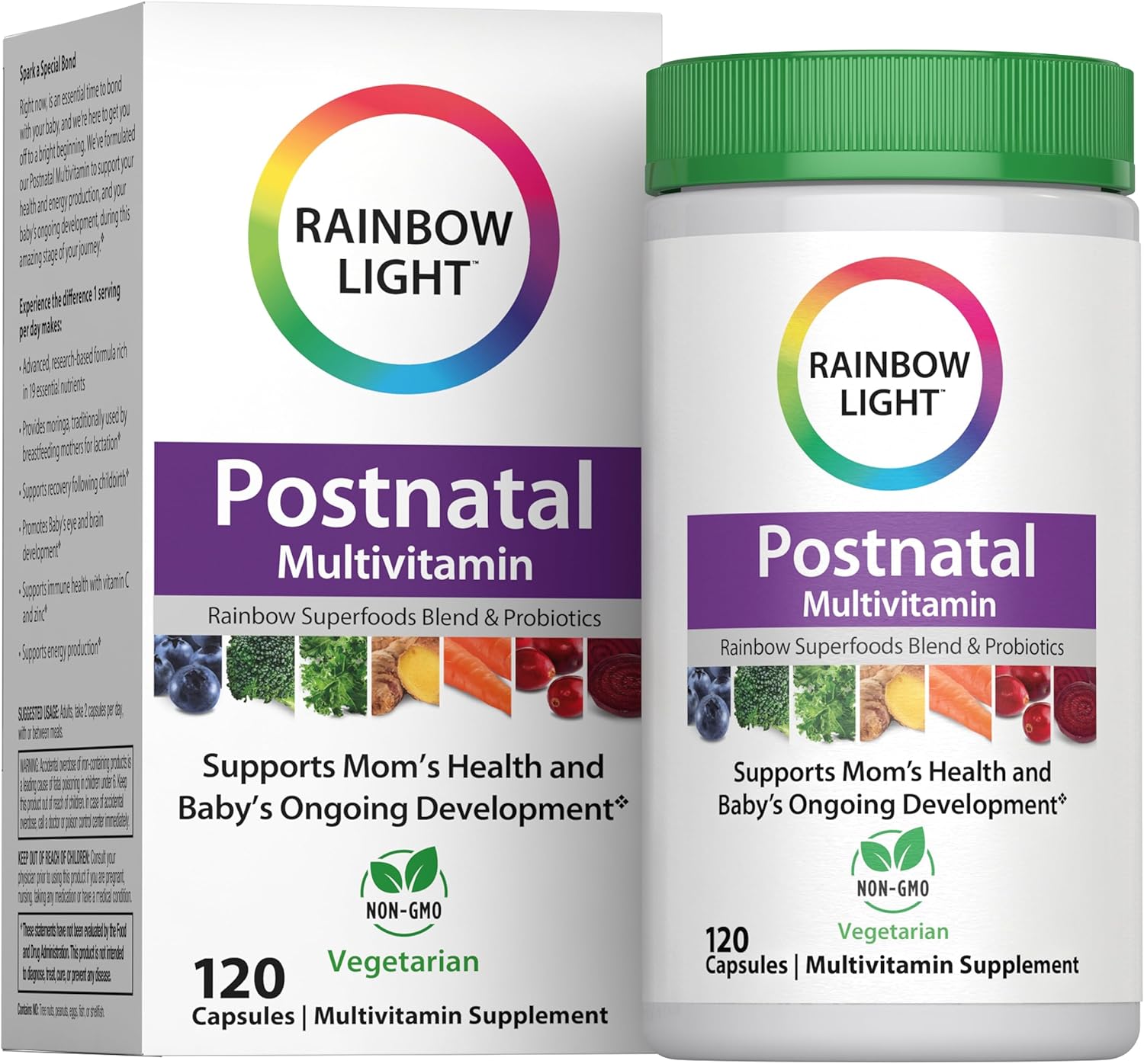 Rainbow Light Postnatal Multivitamin for Women | 120 Capsules | Supports Mom’s Health & Baby’s Development Plus Immune Health with Vitamin C and Zinc | Superfoods Blend & Probiotics