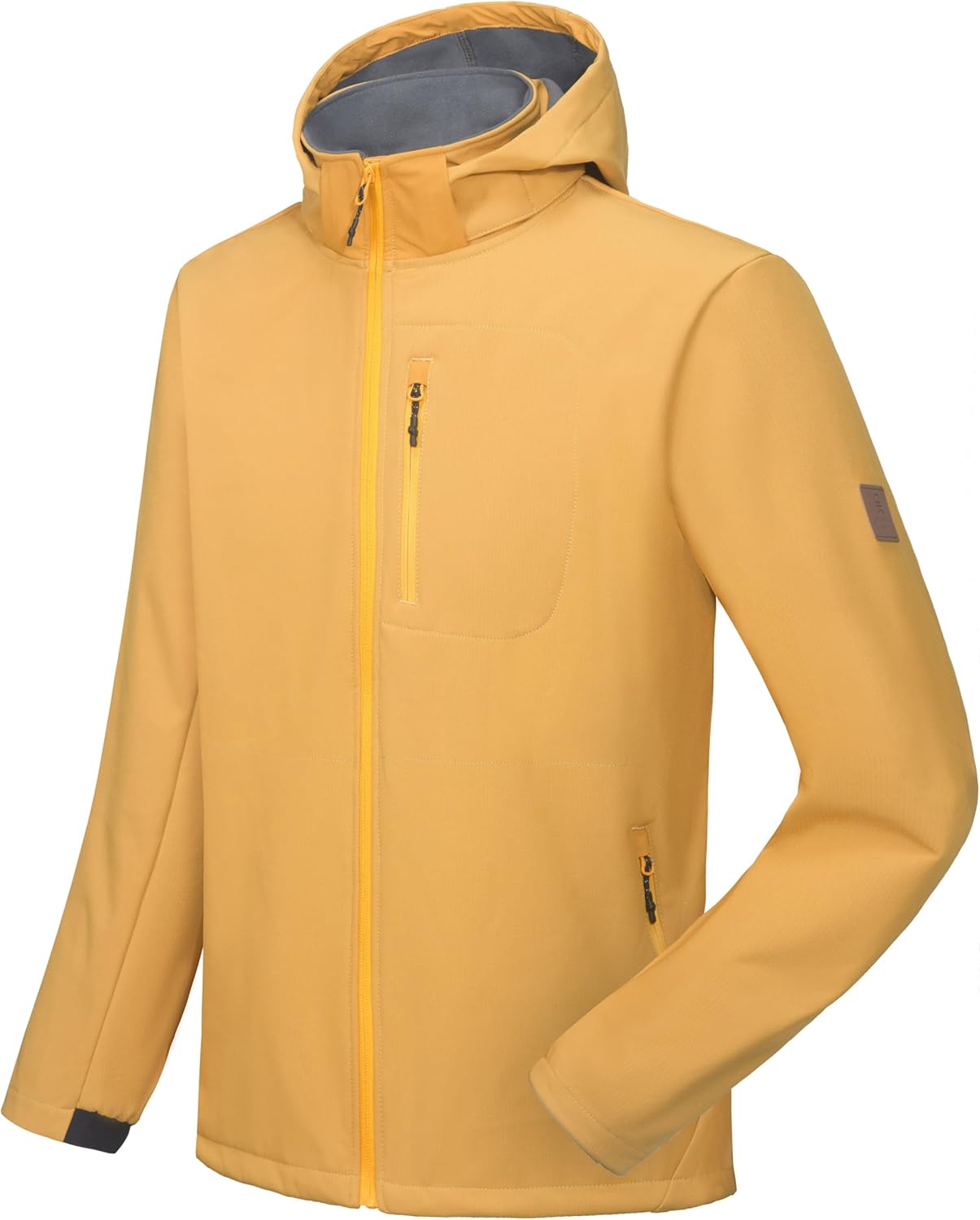 Little Donkey Andy Men’s Fleece Lined Softshell Jacket Lightweight Warm Water Repellent Coat with Removable Hood for Ski
